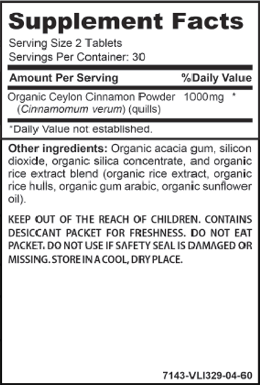 Ingredients: Organic Cinnamomum Verum Powder 1000 mg