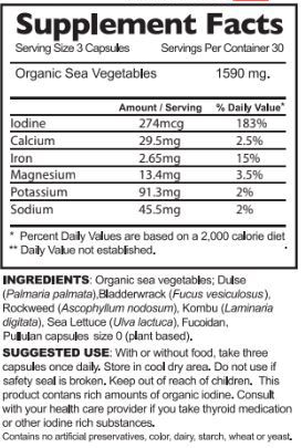 Suggested Use: With or without food, take three capsules once daily. This product contains rich amount of organic iodine. Consult with your health care provider if you take thyroid medication or other iodine rich substances.