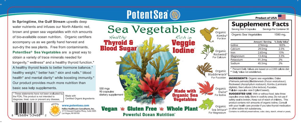 Ingredients: Organic sea vegetables; Dulse (Palmaria palmata), Bladderwrack (Fucus vesiculosus), Rockweed ( Ascophyllum nodosum), Kombu (Laminaria digitata), Sea Lettuce (Ulva lactuca), Vegetable Capsules size 0 (plant based)