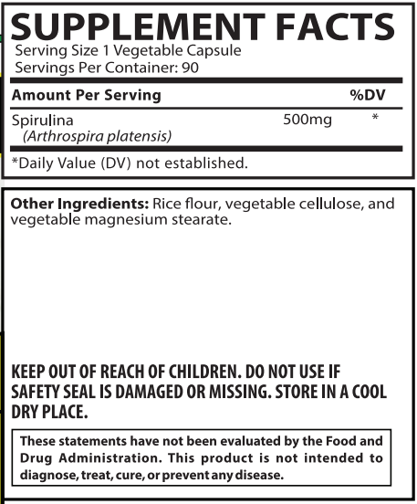 Ingredients: Spirulina (Arthrospira platensis) 500mg